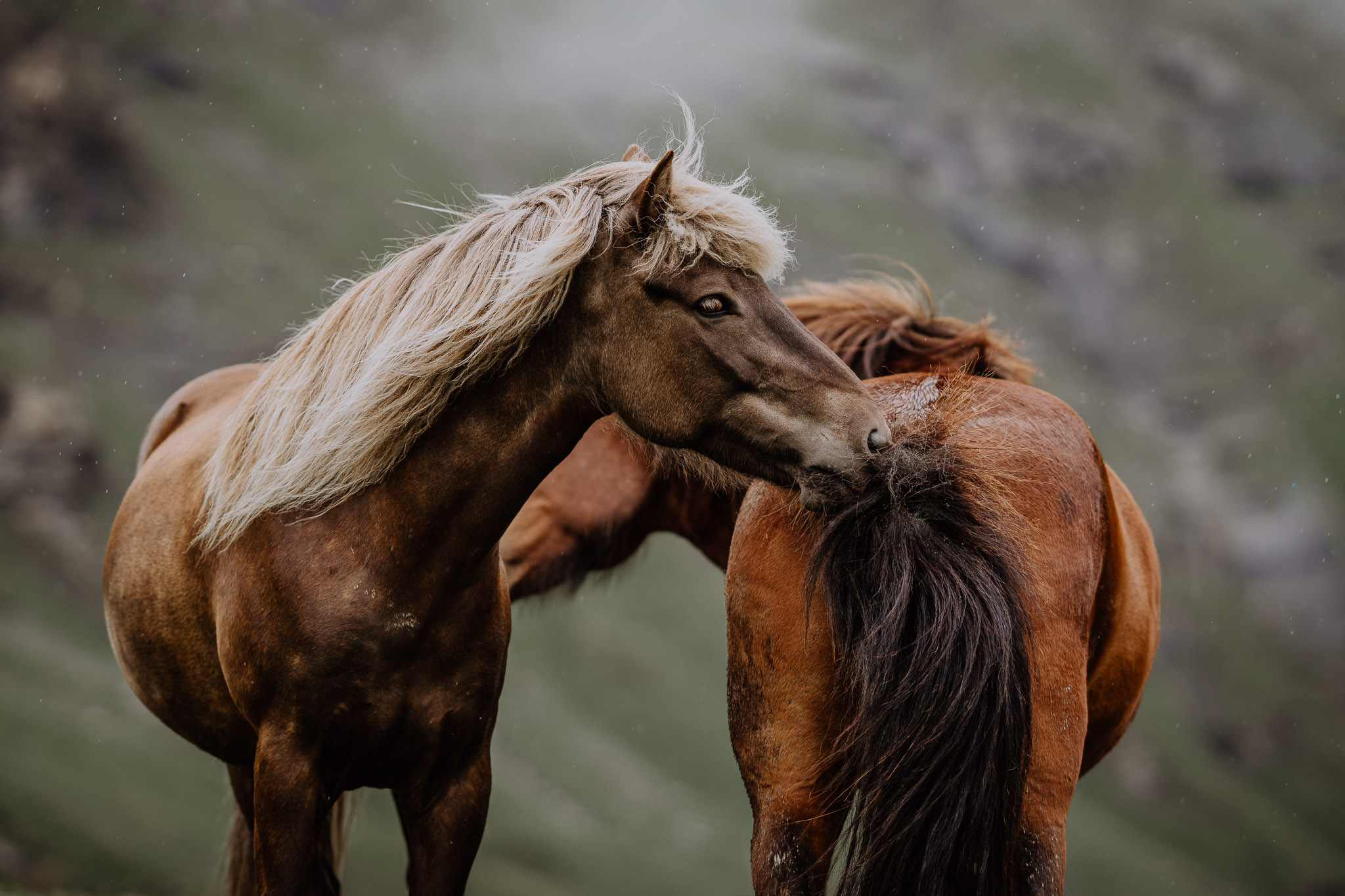 There is something magical about horses in the rain for me. The earth becomes calm, you can hear the rain falling on the ground and the individual drops of water roll off in the manes. When the light gently caresses the raindrops, it looks like glitter. There is a special stillness in these moments, almost as if the world is holding its breath. The rain is a reminder that even the everyday is full of magic if you look closely enough. Bring a little magic into your home.